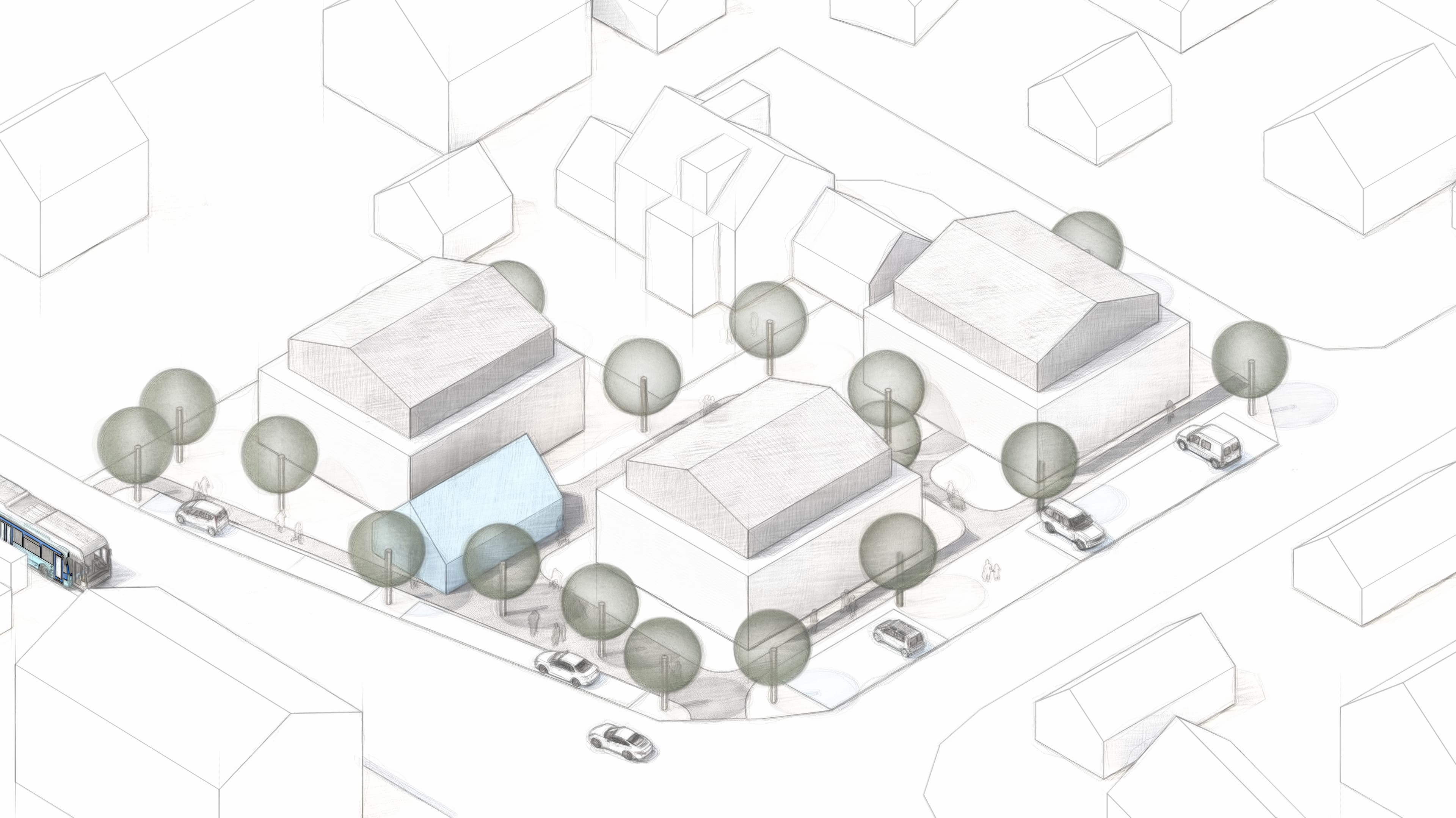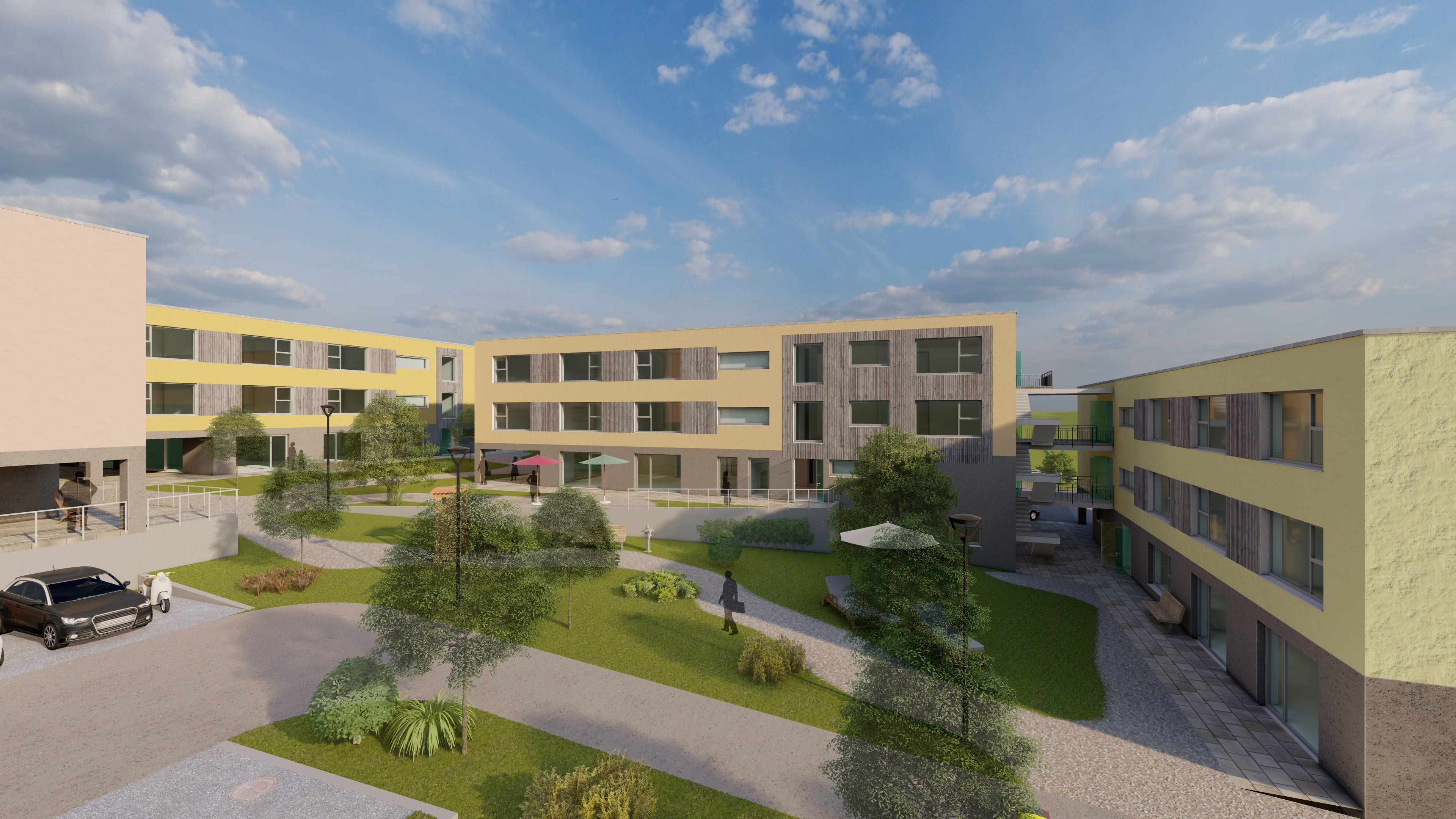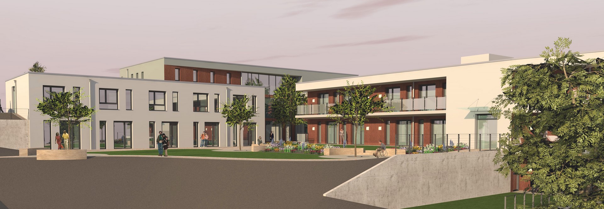 Auf einem 6.749 m² großem Grundstück plant Domizilium ein modernes und innovatives Wohn- und Pflegeangebot mit je 80 Wohn- und Pflegeplätzen sowie weiteren 30 stationären gerontopsychiatrischen Pflegeplätzen. Diese verteilen sich auf fünf weitgehend eigenständige Häuser, welche sich entlang eines südorientierten Hangs erstrecken. Ein gemeinsamer Gartenhof im Zentrum des Ensembles trennt und verbindet die Gebäude gleichermaßen und lädt zum Verweilen ein. So entsteht ein attraktives Quartier sowohl für die künftigen Bewohner als auch die für die Beschäftigten. Aktuell wird die Planung mit potentiellen Betreibern konkretisiert.