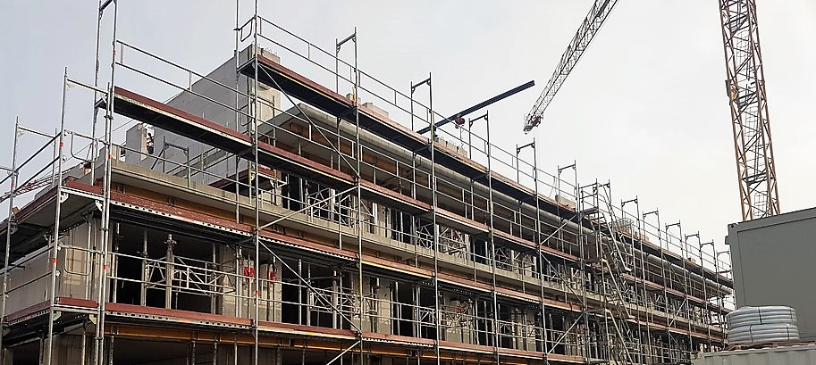 War Anfang Mai erst der symbolische Spatenstich, zeigt sich nun schon nahezu die gesamte Kubatur des Gebäudes.